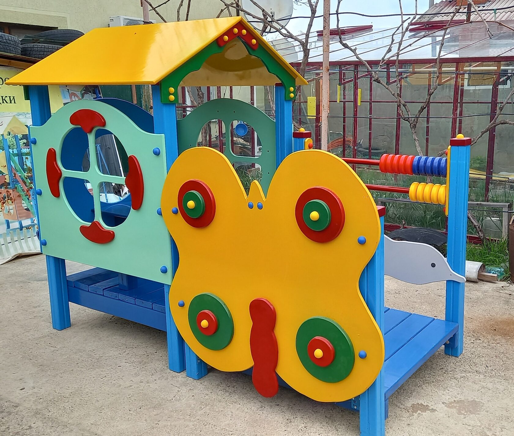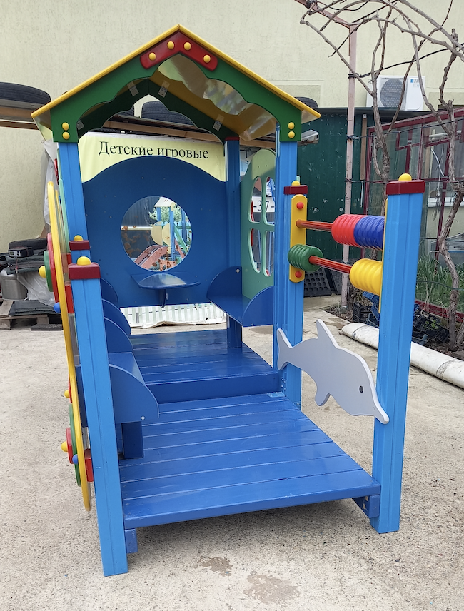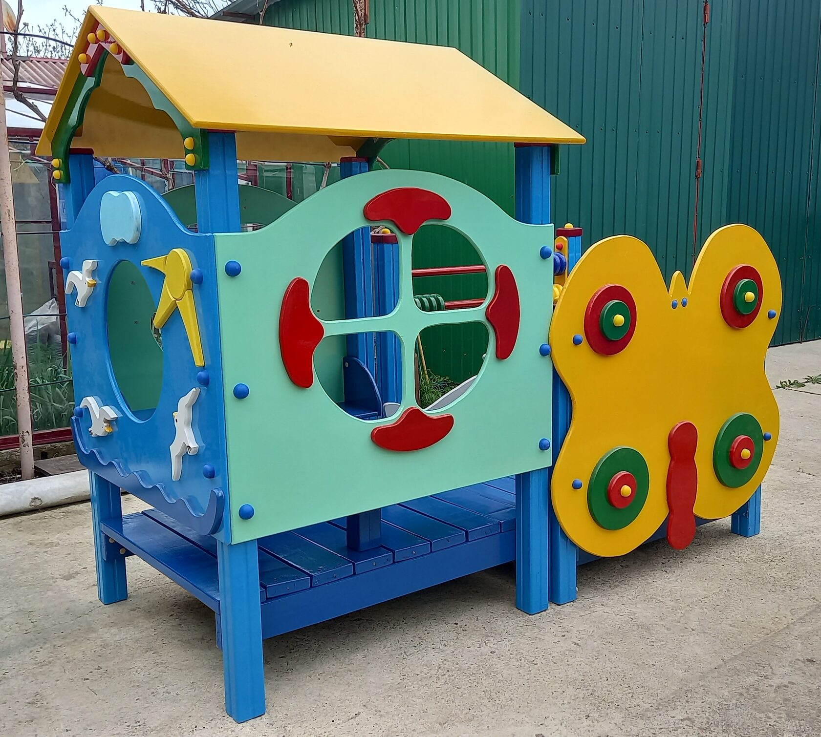 Детский домик. Для детей от 3-х до 12 лет. Материал изготовления: клееный брус, дерево. Материал изготовления: дерево, ламинированная фанера. Покрытие: синтетическая эмаль. Гарантия 1 год.