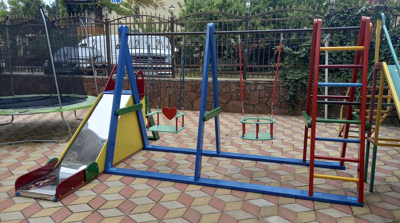 Качели для детей от 3-х до 12 лет. Комплектация навесным оборудованием по желанию заказчика. Материал изготовления: дерево, ламинированная фанера. Покрытие: синтетическая эмаль. Гарантия 1 год.